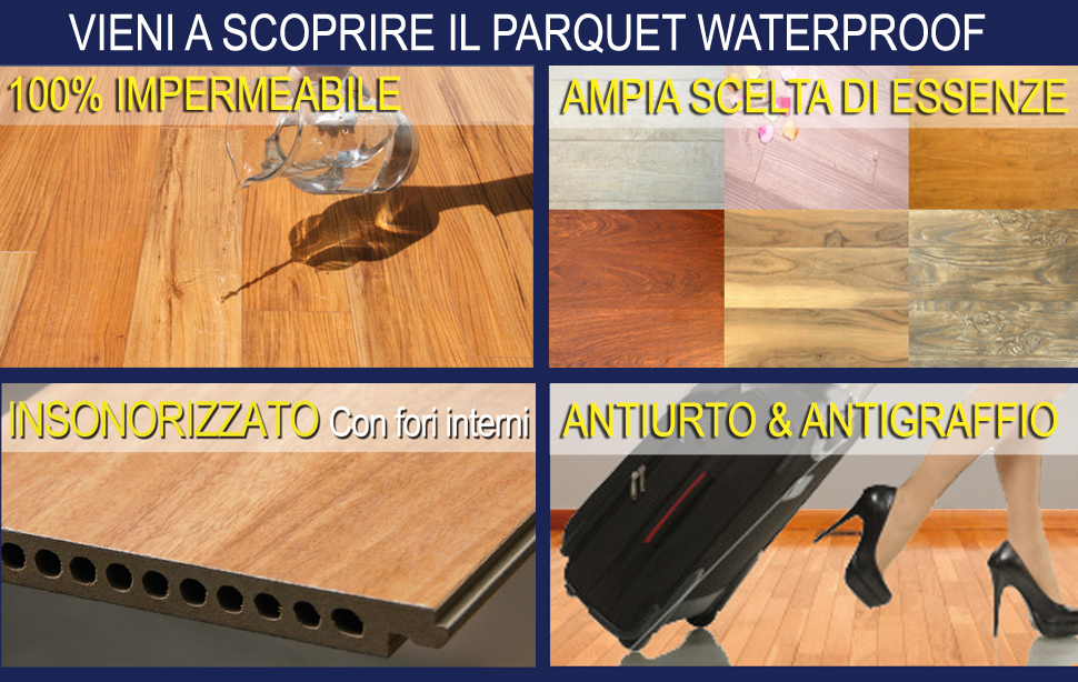 Solo da noi poi trovi i pavimenti in legno resistenti all'acqua: questi parquet waterproof sono davvero impermeabili; non solo: sono anche antigraffio,